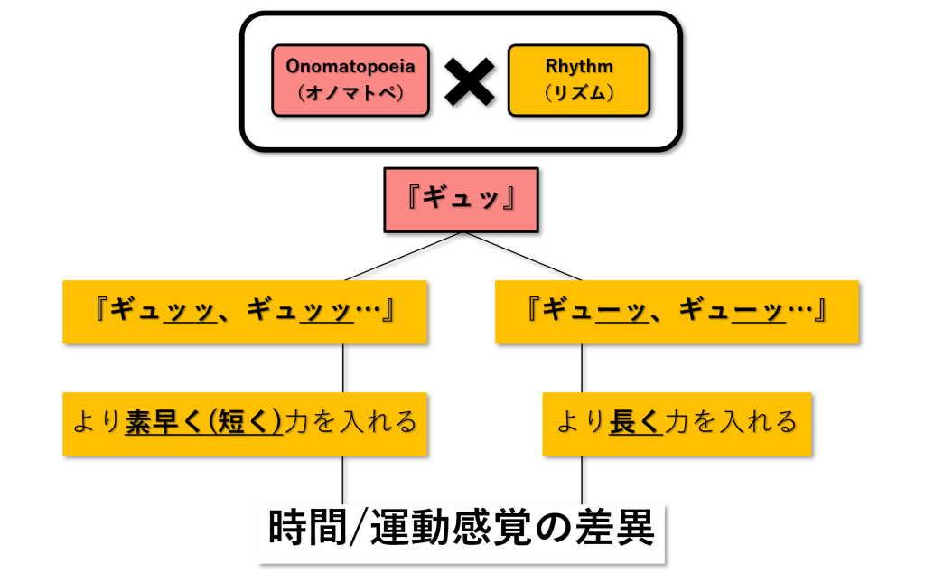 「運動のイメージ」と「音のイメージ」、さらには「速度のイメージ」を同時に表現できるオノマトペは、よりシンプルに、かつ必要な情報を短い言葉で表現できる最適なツールなのかもしれません。